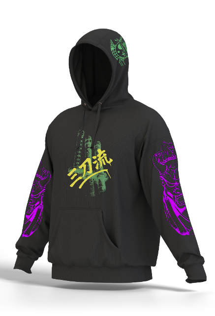 Hoodie inspirado en One Piece con diseño de Roronoa Zoro, capturando su determinación, honor y estilo de combate con tres espadas. Un diseño imponente y lleno de actitud, ideal para fans que buscan comodidad, estilo y la esencia de un verdadero guerrero.