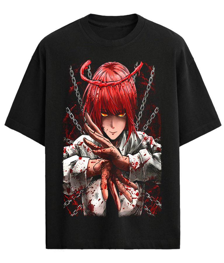 Playera inspirada en Chainsaw Man con diseño de Makima, capturando su presencia dominante, misterio y control absoluto. Un diseño elegante y poderoso, ideal para fans que buscan una prenda con estilo, carácter y una vibra intensa y cautivadora.