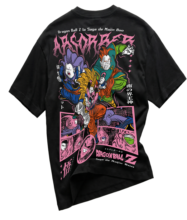 La playera majin boo representa destrucción, energía y una fuerza completamente impredecible.