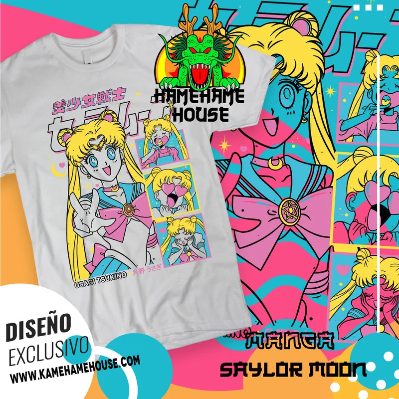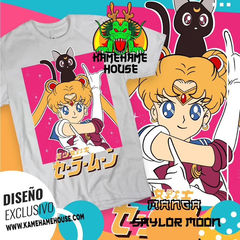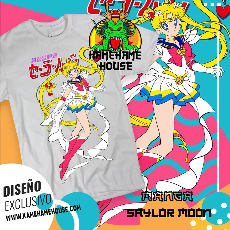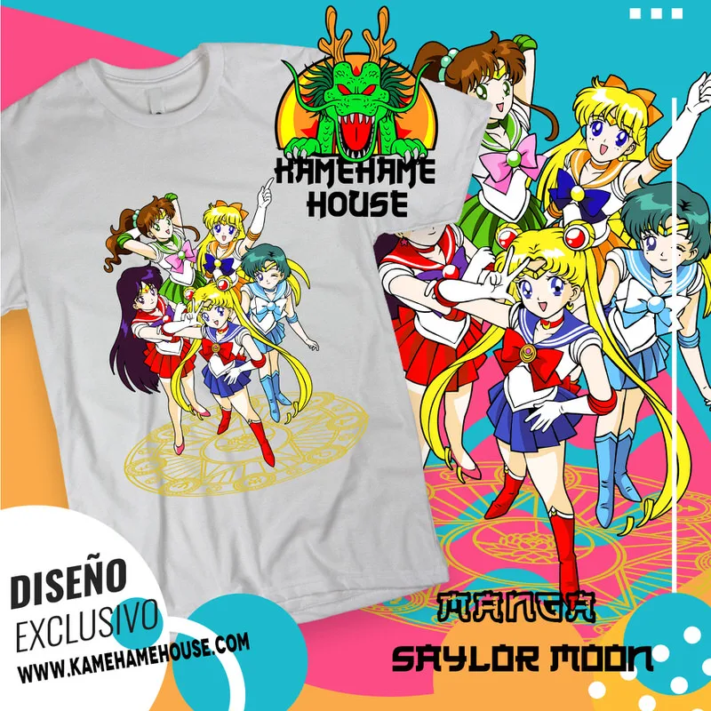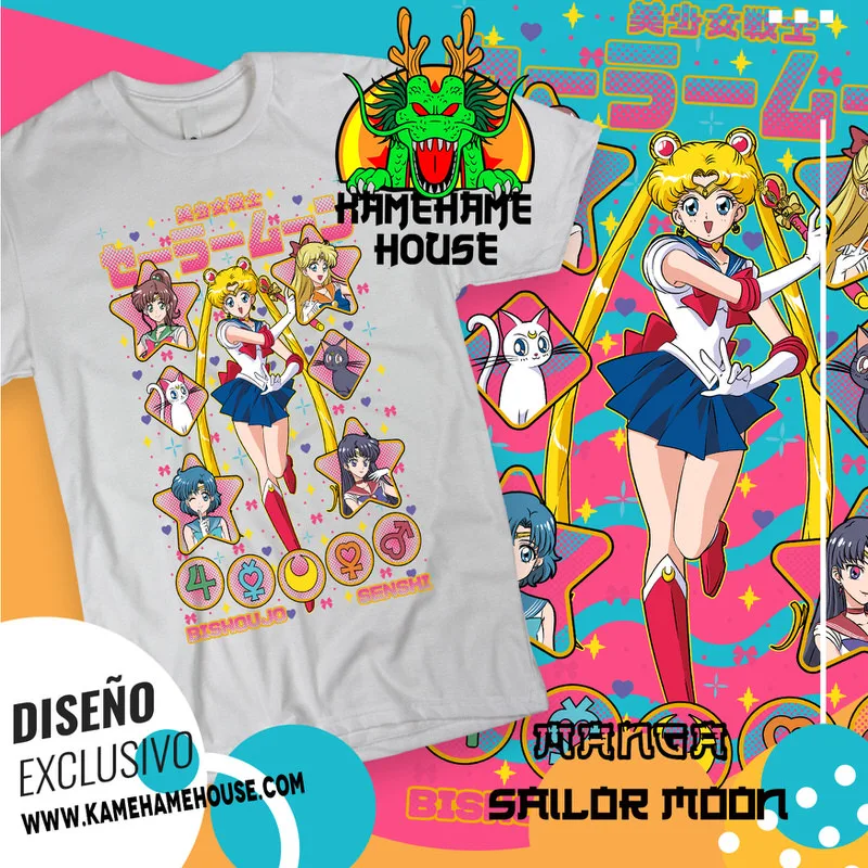 En KamehameHouse encontrarás una mágica colección de playeras inspiradas en Sailor Moon, el icónico anime que combina heroísmo, amistad y romance. Nuestros diseños destacan a Serena Tsukino (Sailor Moon) y sus inseparables guerreras, como Sailor Mercury, Sailor Mars, Sailor Jupiter y Sailor Venus, además del enigmático Tuxedo Mask