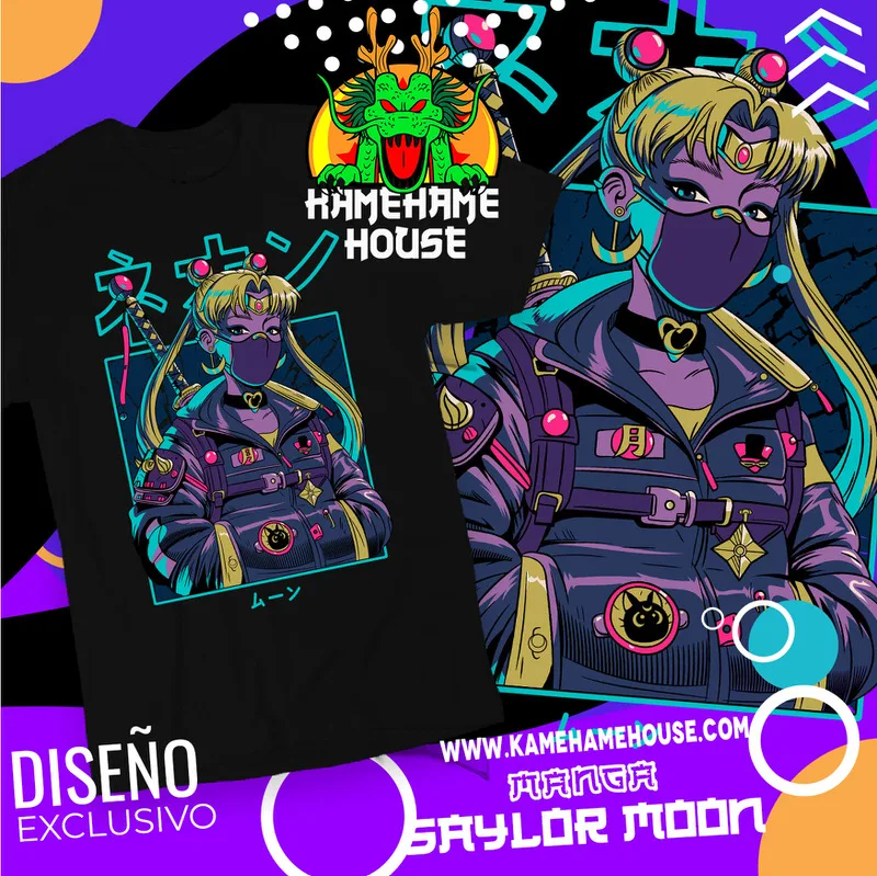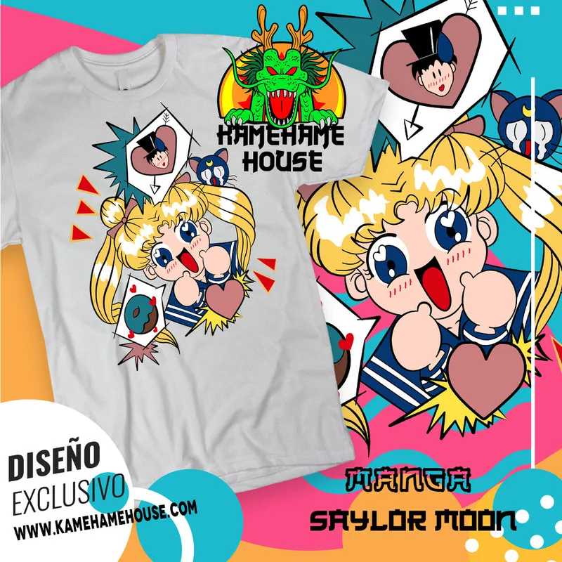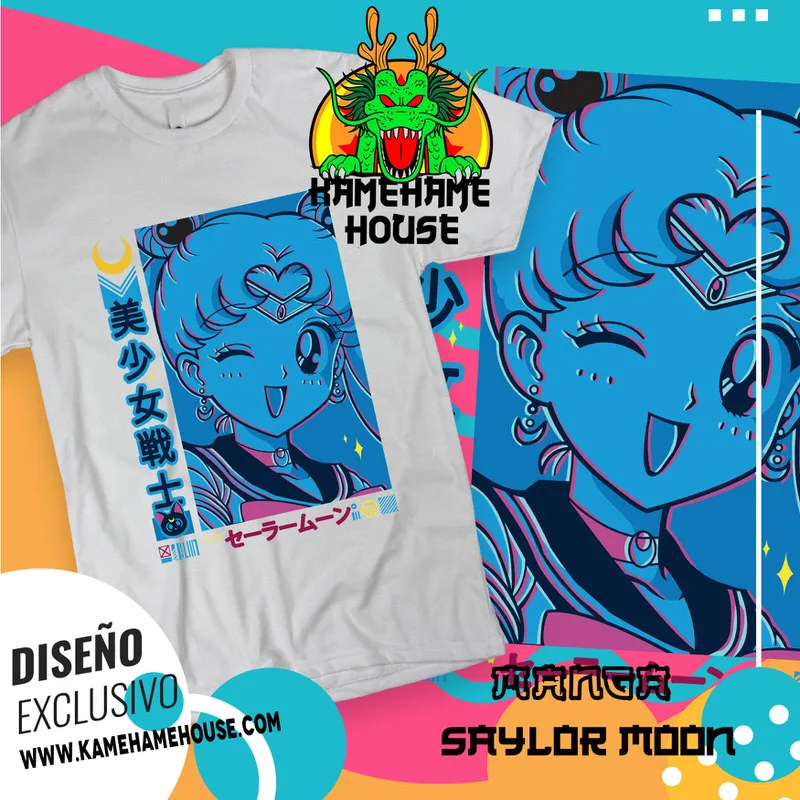 nuestras playeras capturan la esencia de la lucha por el amor y la justicia. Confeccionadas con materiales de alta calidad, son ideales para los fans que quieren brillar como verdaderos protectores del universo. Viste tu pasión por Sailor Moon con estilo y magia, solo en KamehameHouse.
